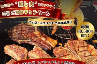 当施設では、毎月29日限定で、ビア缶チキンやトマホークステーキなどを一度に味わえる肉の日限定スペシャルセットを販売します。